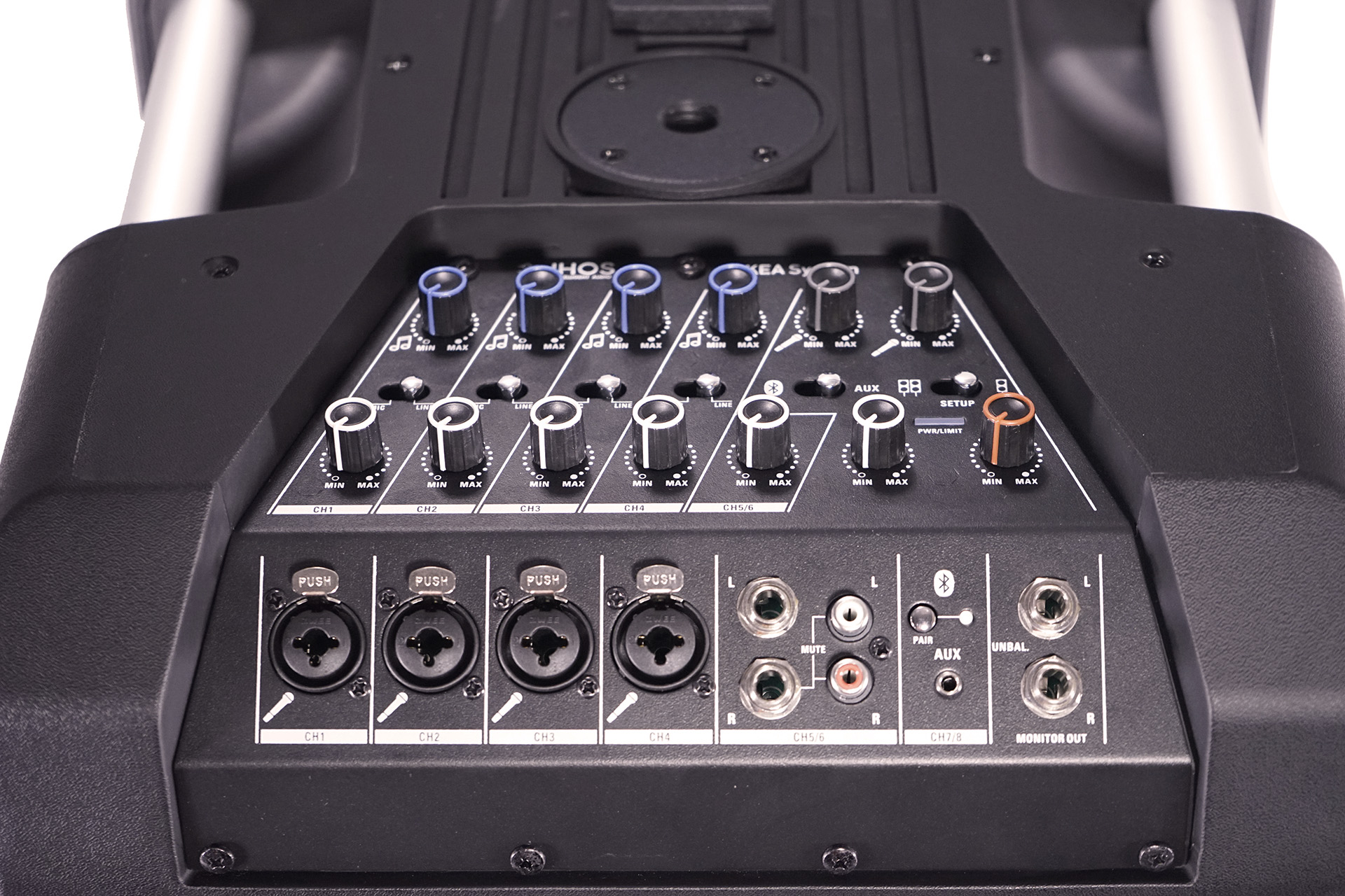 Единичен 10″, активен с вграден усилвател клас D, проектиран в Германия. Постоянна мощност на събуфъра 255W RMS и динамична мощност 510W PROGRAM. Вграден 8 канален аудио миксер с 4 броя Combo XLR, AUX 3.5мм. аудио жак и BLUETOOTH.