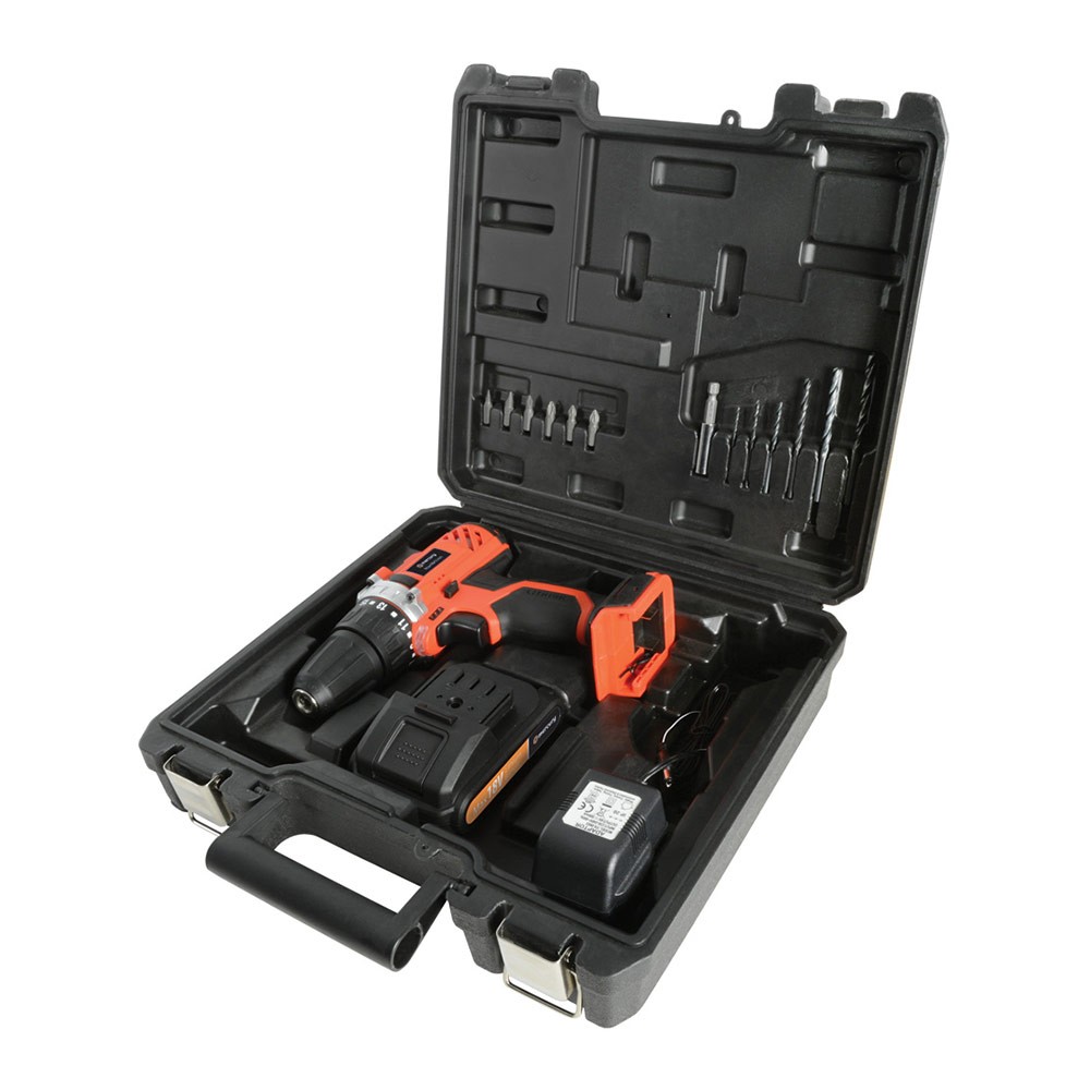 В комплект с куфар, 6 бургии, 6 отвертки + накрайник + батерия