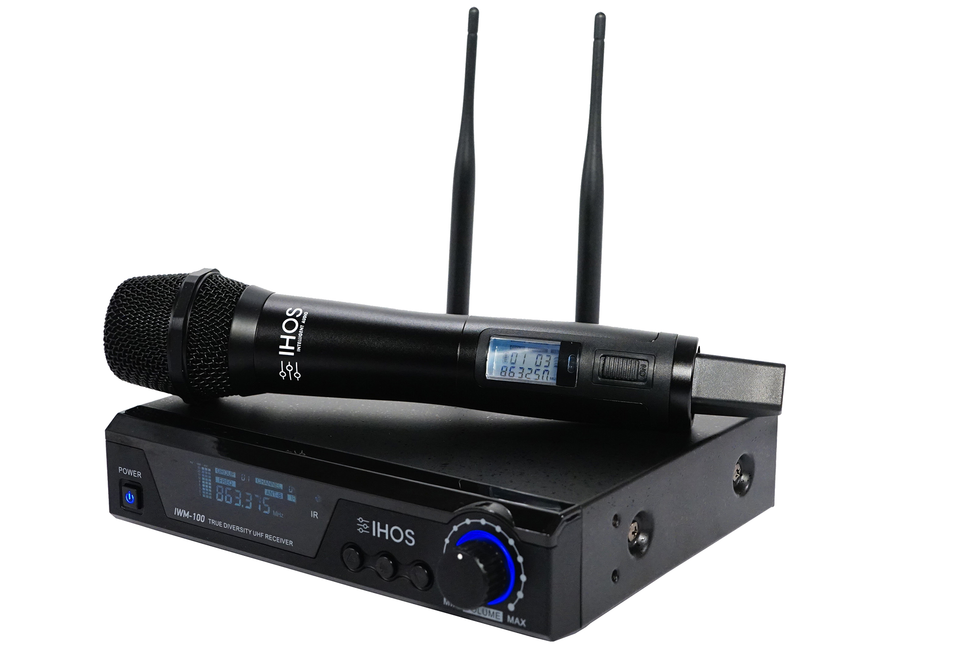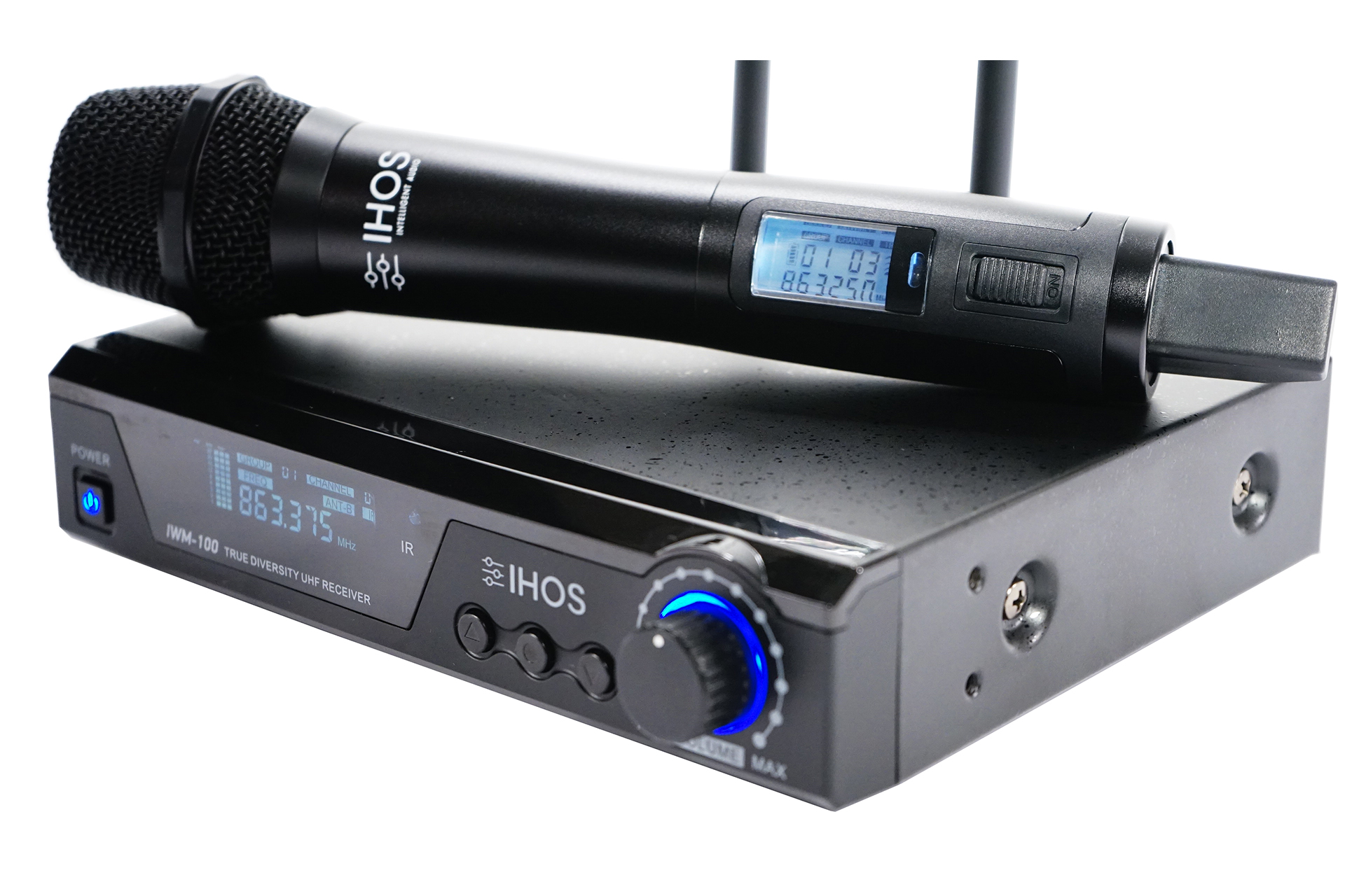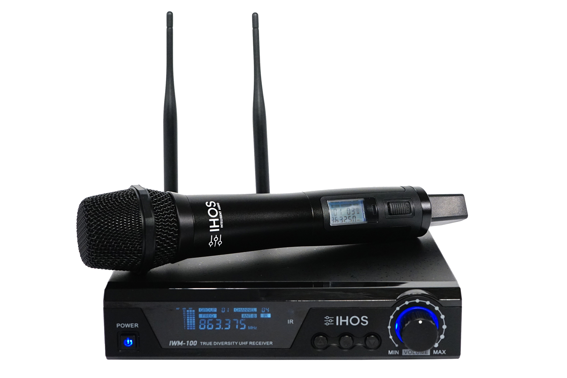 LCD дисплеят на микрофона показва остатъчния заряд на батерията, групата и каналът на който излъчва както и мощността RF сигналът.