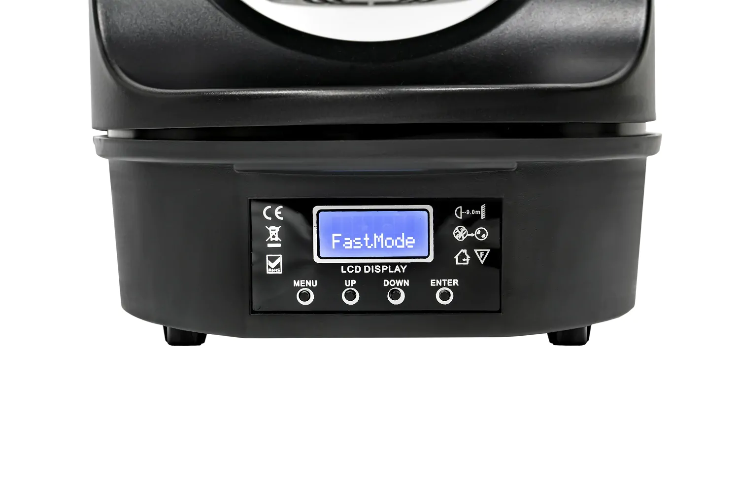 Движещата глава поддържа професионални режими на управление DMX512 чрез 3-пинов XLR вход и изход. Това осигурява лесна интеграция с други осветителни системи и пълен контрол над светлинните ефекти.
