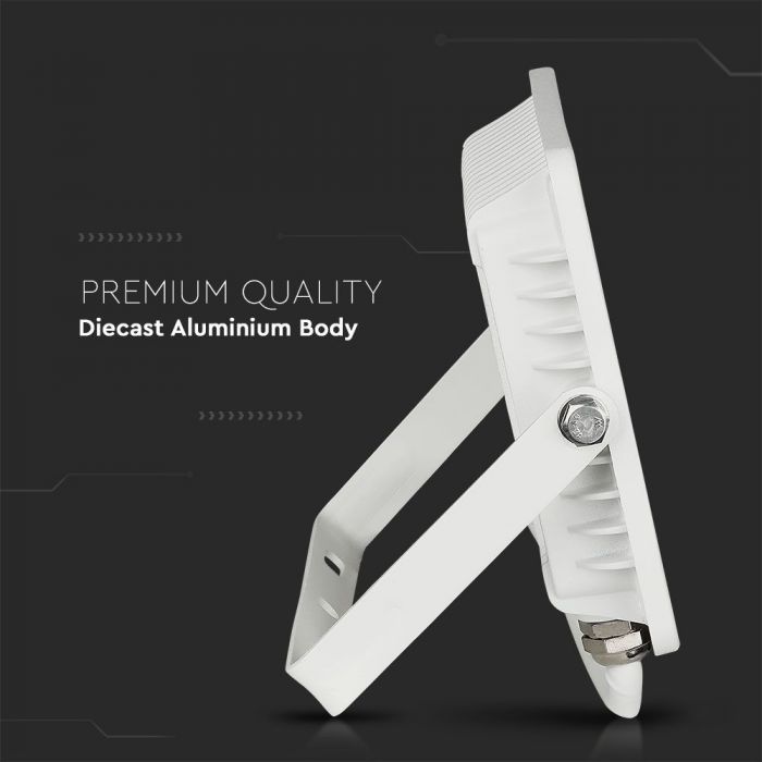 Елегантният бял корпус на прожектора V-TAC VT-100 се вписва перфектно в съвременния дизайн и осигурява дълготрайна работа. LED технологията гарантира ниска консумация на електроенергия и дълъг експлоатационен живот в сравнение с традиционните халогенни прожектори.