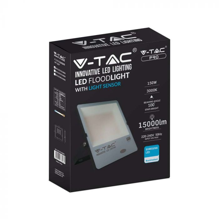 LED прожектор със сензор 150W 3000K VT-167 V-TAC черен е мощно осветително решение за външно и вътрешно използване. Този енергоспестяващ прожектор предлага отличнo съотношение между качество и цена.