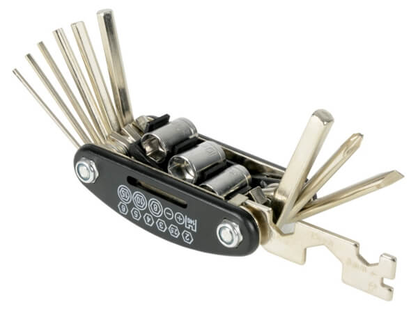 Мултифункционален инструмент, подходящ за съхранение в автомобил, велосипед, мотоциклет или друго превозно средство. Продукта е изработен от метал, издръжлив е на корозия и външни условия.